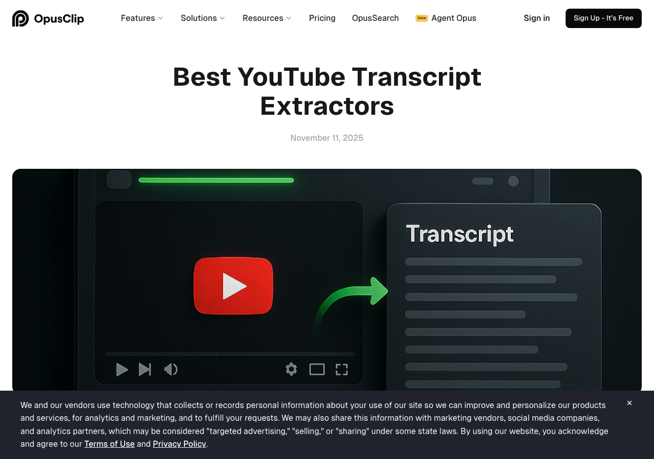 OpusClip is a video repurposing tool that uses AI to generate short clips from longer videos. Transcript extraction is part of its internal processing pipeline, and users can access the transcript of a video they upload or link to within the platform.